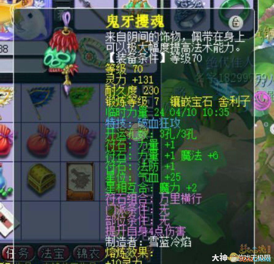 70级的破血项链,熔炼后141的灵力,最高可以熔炼到150+,人造破血项链,还是能值点钱的。