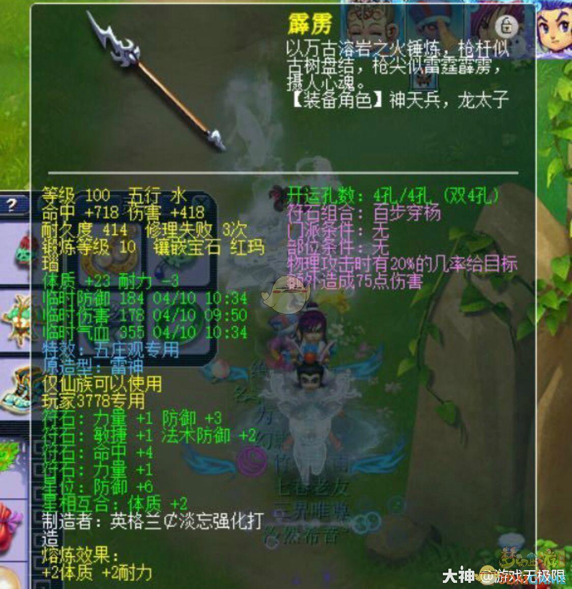100级的枪,原造型锤子,718的命中和418的伤害,总伤害是657点,单加25的体质,减少了1点耐力。属性没毛病,就是失败了三次,修起来比较花钱。