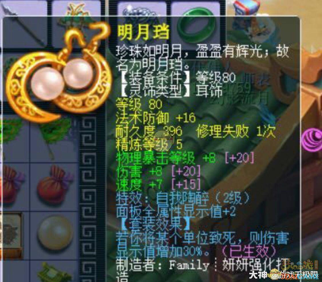 80级的耳饰,主属性法术防御,下排是伤害速度加上一条物理暴击等级。