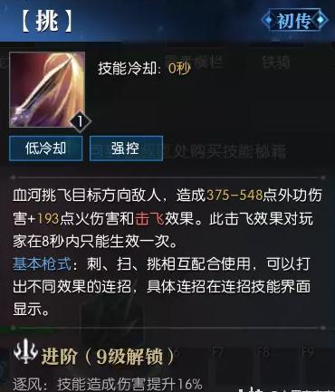 主要是pvp技能,机动性拉满,而且可以穿插在挑刺扫连招中,更加拔高血河细节操作上限,pve玩法只打挑刺也可以带这个增加机动性。