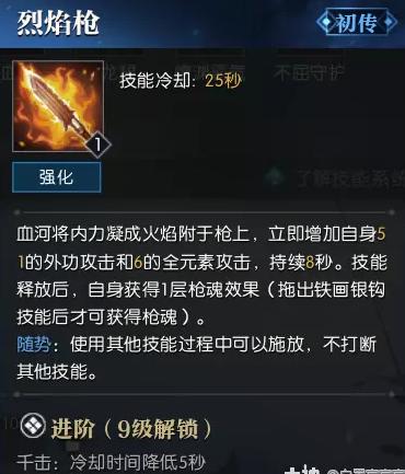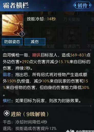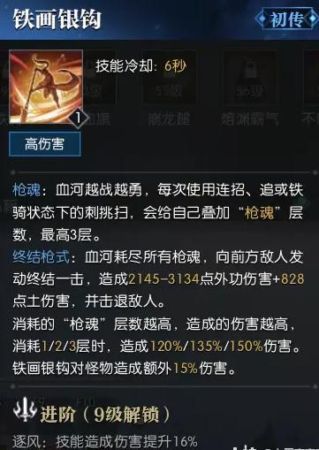 血河最强瞬间爆发,pvppve双适用,施法速度快,而且还有自己的独特机制【枪魂】,每次打出挑刺扫的连招,都会增加枪魂,最高储备三层,每层增加铁画伤害!