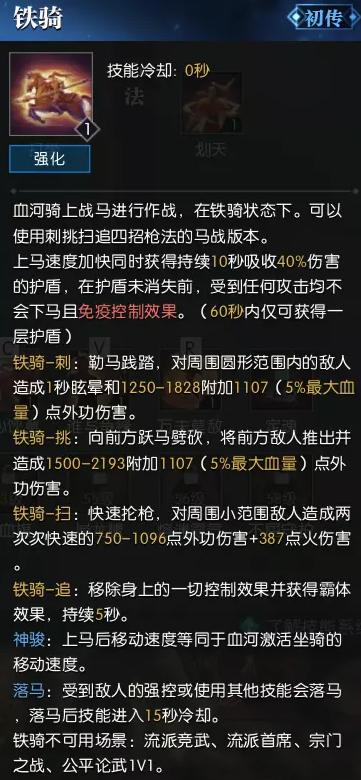 部分pvp玩法偶尔可以用用,血河不同于其他职业的地方,可以战斗中骑马作战,上马后挑刺扫招式发生改变,天赋实装后,还可以在马上释放部分其他技能,增大机动性和控制能力。