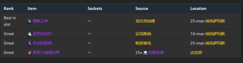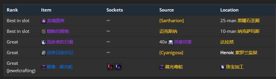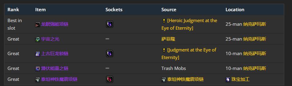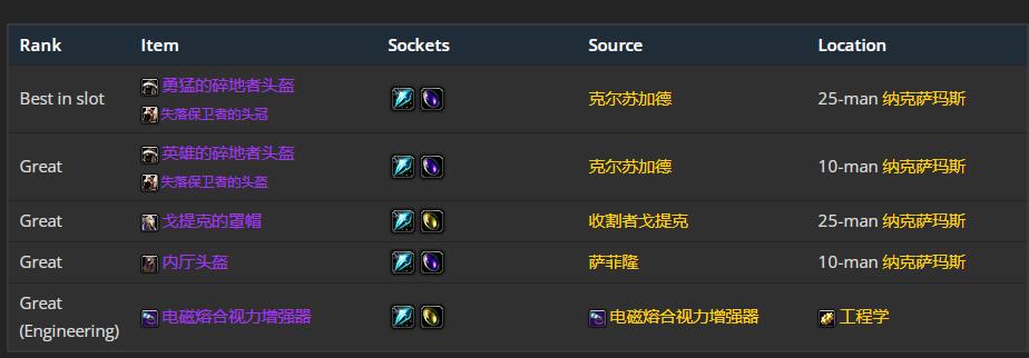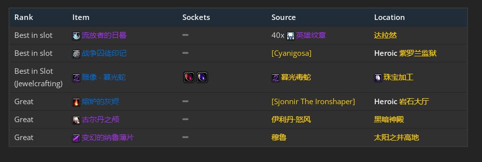 魔兽世界WLK怀旧服元素萨满的团本开放前和P1阶段的BIS装备推荐,另附装备的附魔等推荐。