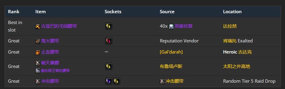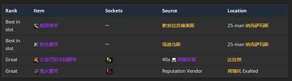 腰带装备团本前的最优解是古兹巴的毛绒腰带,P1阶段是复原束带