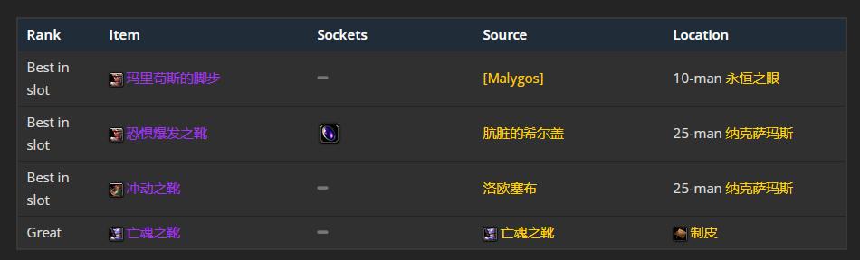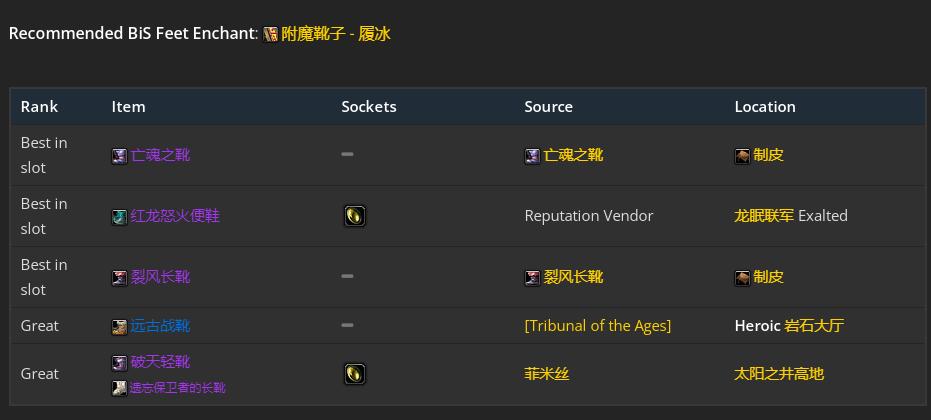 鞋子装备团本前的最优解是亡魂之靴,P1阶段是玛里苟斯的脚步,附魔推荐附魔靴子 - 履冰