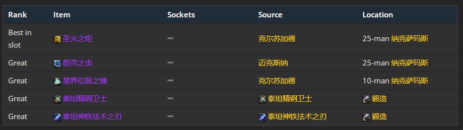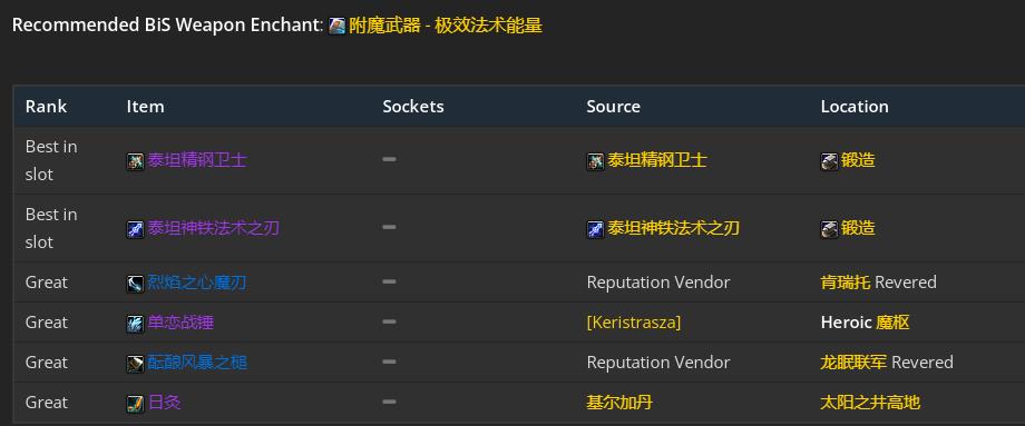 主手武器装备团本前的最优解是泰坦精钢卫士,P1阶段是圣火之炬,附魔推荐附魔武器 - 极效法术能量