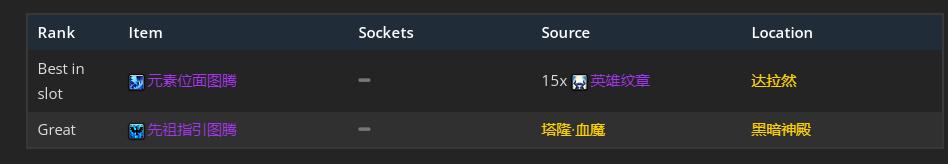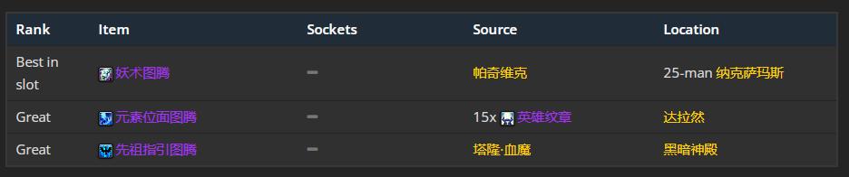 图腾装备团本前的最优解是元素位面图腾,P1阶段是 妖术图腾