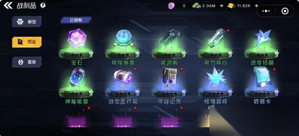 图鉴功能里面可以查看所有战利品的相关信息,同时可对已获得的战利品进行升级、升星等操作