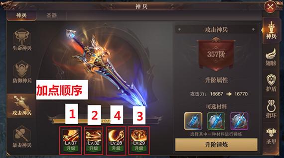 解析:暴击神兵系统材料是比较稀缺的,在日常礼包和平时的节日活动中才会有,所以属性的提升也是神兵系统中最好的,那么我们核心中的核心所有职业优先选择第二层“战神破灭:PVP伤害永久百分比提升”,其次选择第四层“战神嗜血:将伤害转换成生命中回复持续3秒”,再往后面就是选择档期第三层“战神狂热”和第一层“战神不屈”。