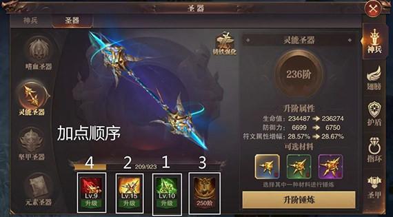 解析:灵能和坚甲以及元素圣器,因材料升级只能在平时活动中才能获取到,所以大部分的玩家都没有达到一个4层都激活的状态,所以这里先说满级状态下选择第三层“灵能护佑”、第二层“灵能无惧”、第四层“灵能怒战”、第一层“灵能剜心”的顺序提升,如果大家后面的没有激活,前期可点第一层或者第二层,此灵能圣器的提升价值意义比较平均。