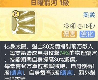 最后,阿波罗的奥义“日耀箭河”将她的输出能力推向极致。施展该技能后,阿波罗将化身为太阳,向前发射30支箭矢,每支箭矢能够造成74%的物理伤害。在技能持续期间,她的减伤效果将提升30%。此外,每当己方有队友阵亡,阿波罗会获得一层“遗言”,每叠加五层“遗言”,她的箭矢数量将额外增加10支。该技能在团战中极具威胁,能够大规模压制敌人,同时提高她的生存能力,避免被敌方集火击杀。
