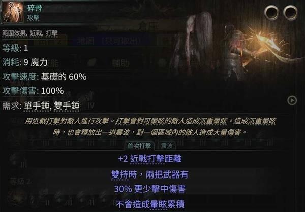 进营地,买把锤子,双手锤最好,第一个技能拿碎骨,需要在前期用碎骨打沉重眩晕。