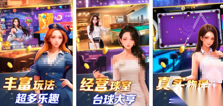 玩法丰富模拟感真实的趣味台球模拟游戏,玩家将会拥有一座繁华的台球厅,不仅需要将其经营发展起来,还可以在挑战台球厅中匹配各路对手。全新的物理碰撞引擎让击球碰撞的轨迹更加真实,丰富的球杆球桌给玩家不同的手感体验,更有独特赏金赛事可以挑战。还能在线匹配全世界的玩家,进行天梯擂台挑战赛,从而获得超人气的排名奖励。