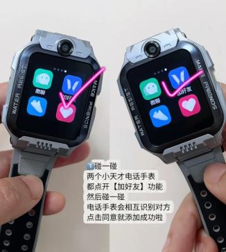 两个小天才电话手表,都点开【加好友】功能,然后碰一碰,电话手表会相互识别对方,点击同意就添加成功啦