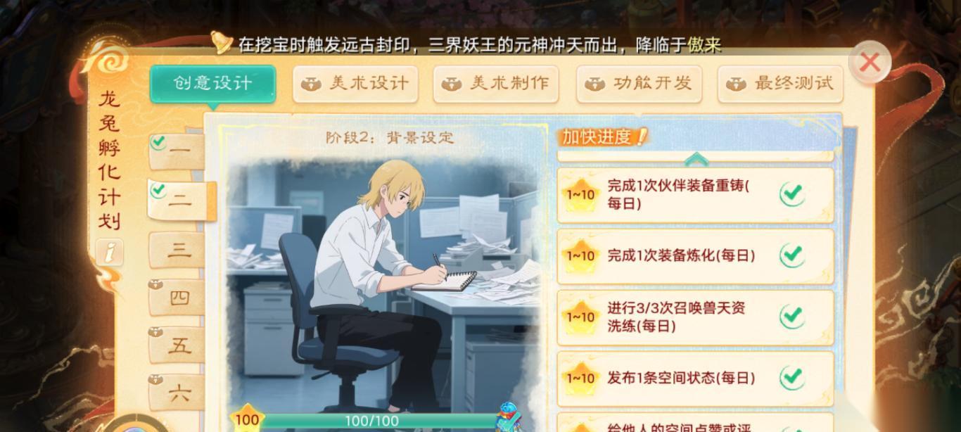 阶段2:背景设定,策划正在设计龙兔的背景故事;