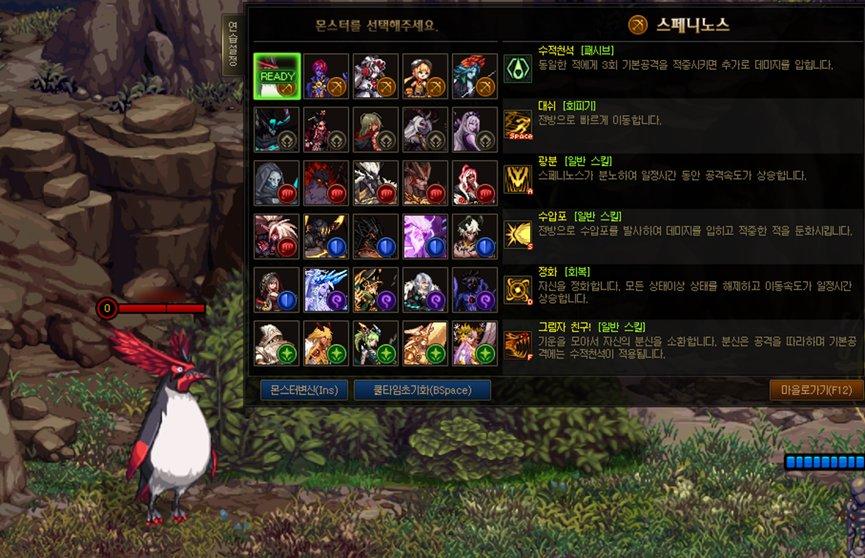 * 训练场内可以事先选择怪物进行操作、技能研究。