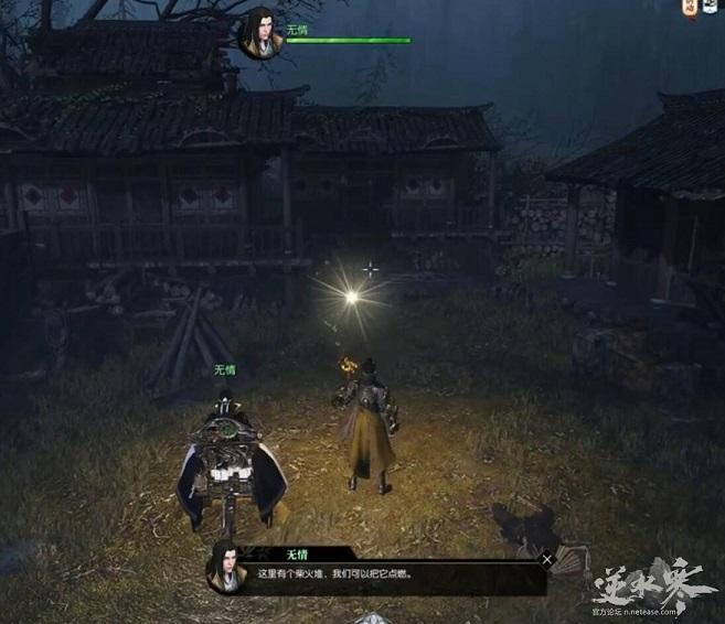 无情对话,第一个亮点火堆处倒入火油,点亮火堆。检查尸体拿走小刀,旁边检查获得罐子和柴火,背包中小刀使用打开罐子获得火油