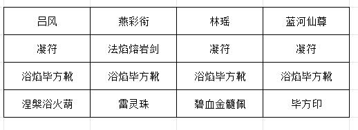 第四回合:吃剑海丹,柳盈打出玄冰神破和玄冰九变,甄巧巧打出战魂咒和焚元蓄力决,吕风复制焚元蓄力决并打出,林瑶打出燎原决,如果战意决在上方,打出,柳盈打出冰刃击杀刀妖和雷、封令牌,保留火令牌2滴血。如果感觉后面伤害不够可以把吕风的玄天战意符打出,不过一般是够的。