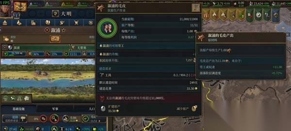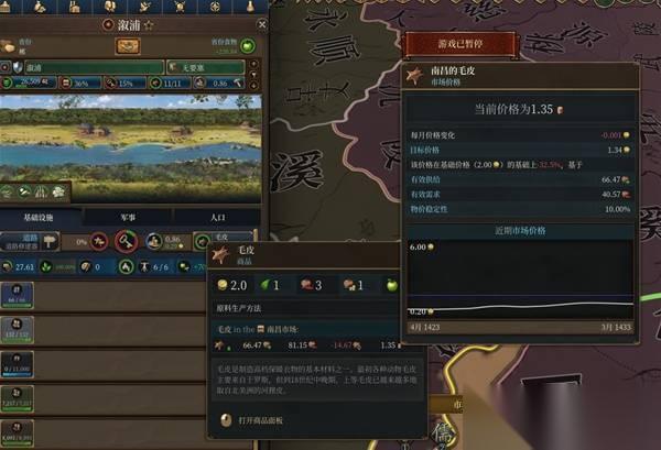 上边两张图比较清楚了,溆浦的皮毛原产等级为11级,在仅有部落民几乎不存在buff的情况下,实际产量为11.08,然后在南昌市场上,毛皮的价格为1.35,那么溆浦的原产收入则为14.958