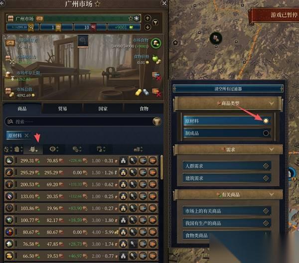 最直观的办法,是从城镇界面点开其所属的市场,然后在选择按供给排序并点上原材料过滤器