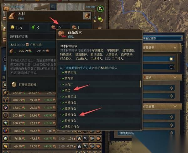 当然,在游戏早期,由于原材料的等级没有提升起来,所以市场上不一定能完全真实地显示过剩原材料,这种适合,我只能建议大家采取瞪眼法,盯着原材料地图看,或者挑选一种比较重要的原材料(木材、棉花、小麦),看看在该市场的分布情况